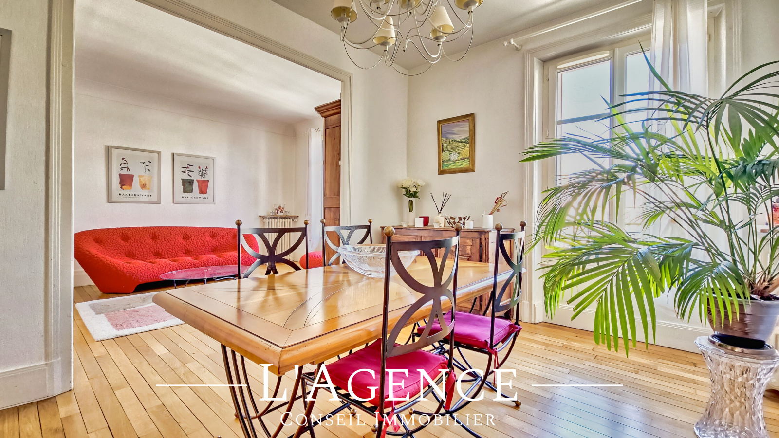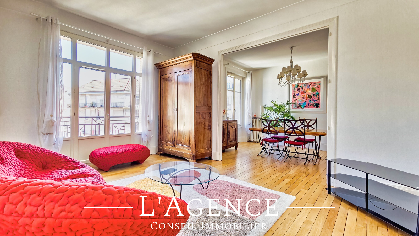 Il se compose, d'une belle entrée, d'une cuisine indépendante aménage et équipée très fonctionnelle, d'un lumineux séjour double de 32m² avec un beau parquet en chêne, d'un couloir desservant, deux chambres de 15m² chacune, une salle de bains entièrement refaite, un WC indépendant et un placard à usage de buanderie.